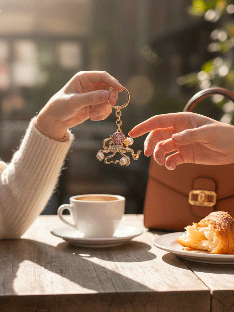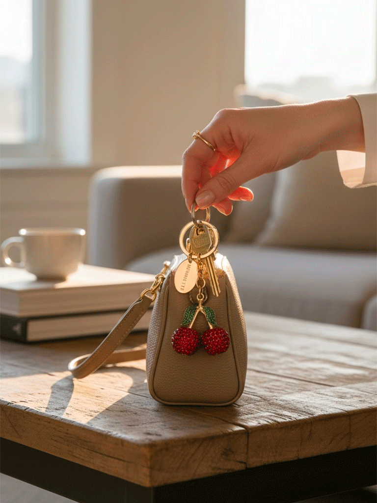 Portachiavi con strass e forme divertenti ma eleganti allo stesso tempo, adatti anche come decoro di borse e zaini.