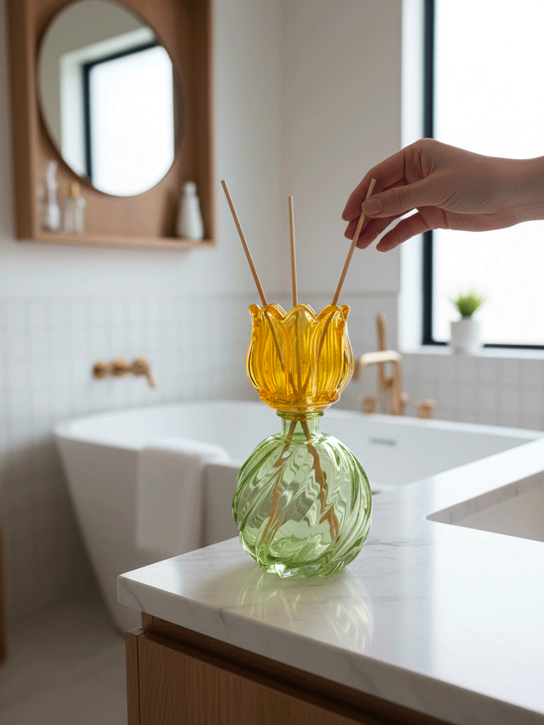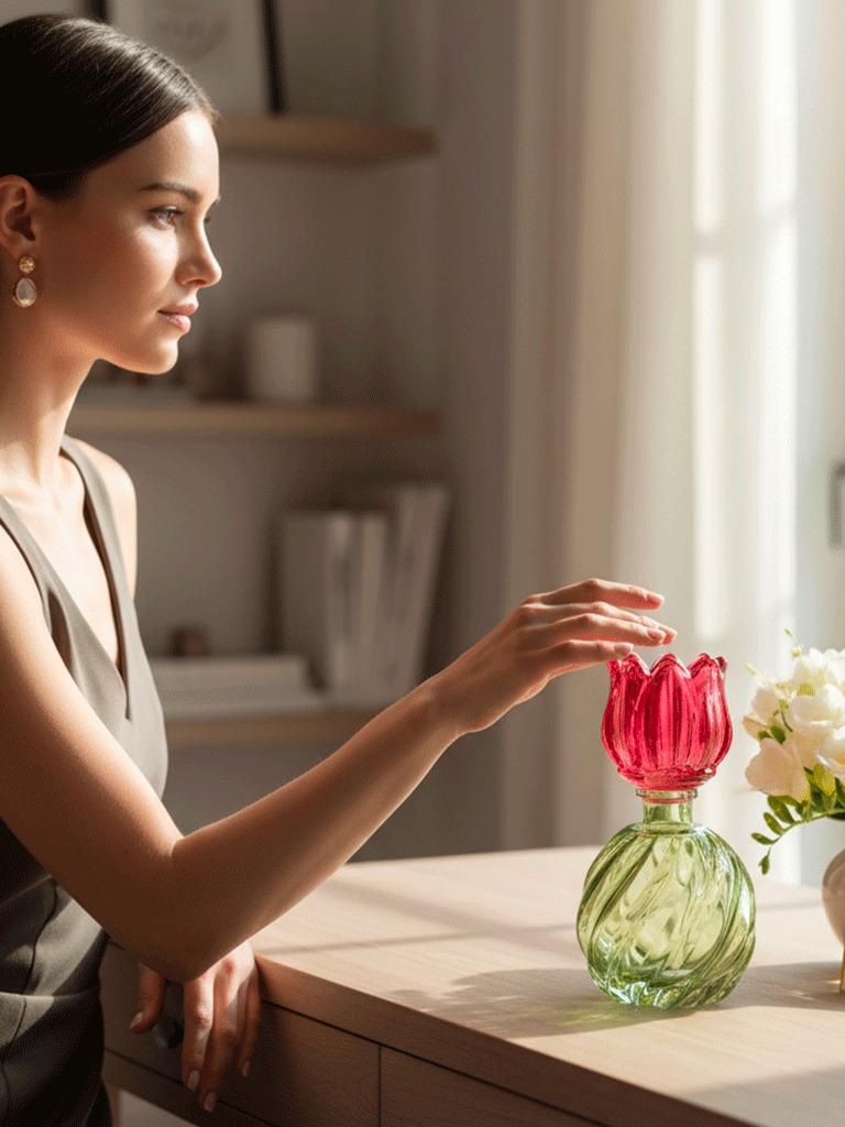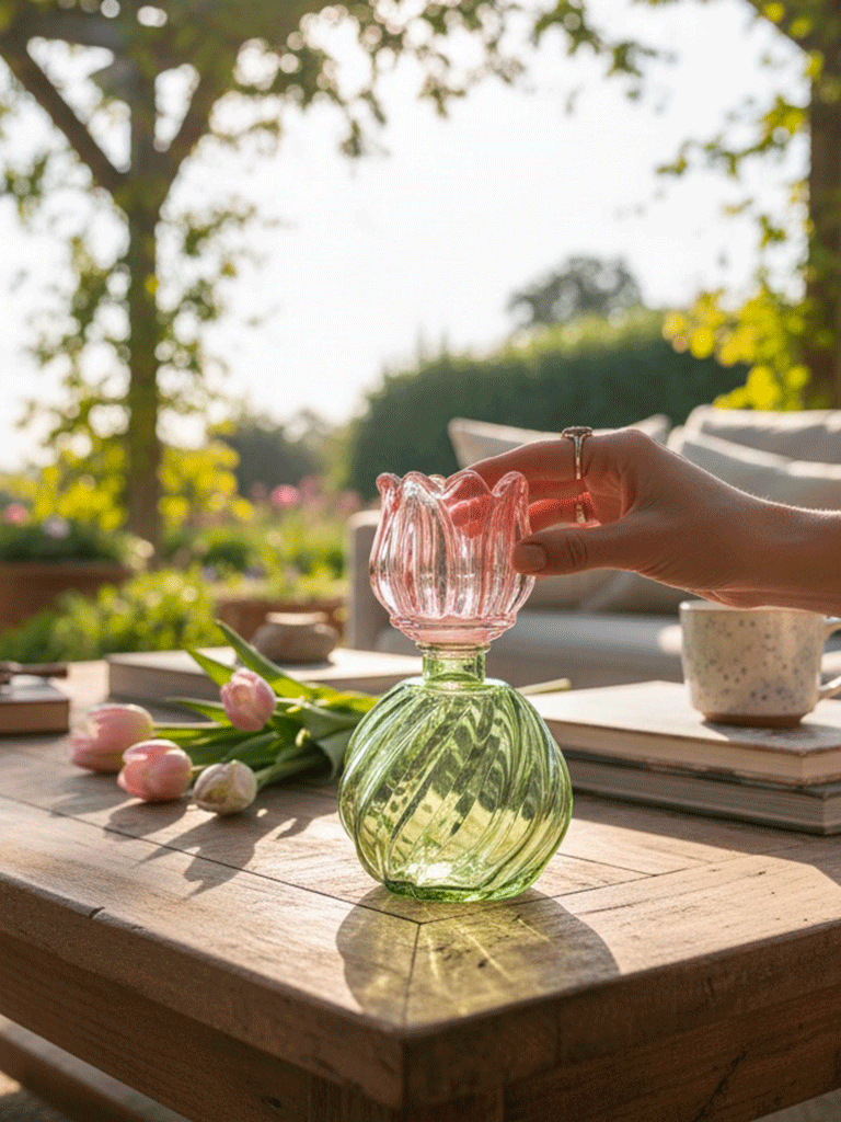 Delizioso vaso in vetro con forma di tulipano in 3 colori, perfetto come contenitore per fiori freschi o secchi, oppure per fragranza d’ambiente.